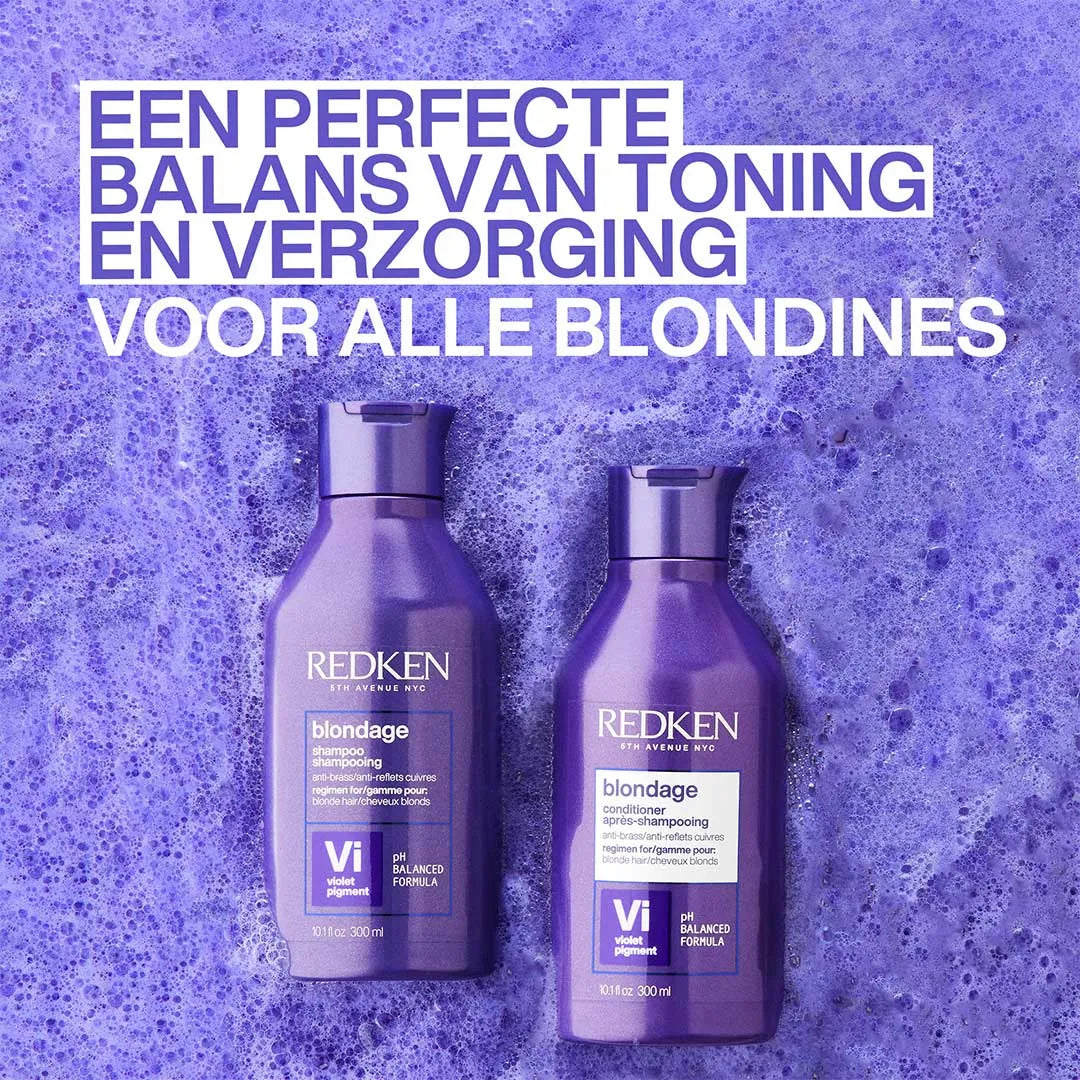 Med Redken Blondage de Luxe Set kan du nyde dine blonde lokker fuldt ud. Det farvekorrigerende sæt sikrer, at gule toner i håret neutraliseres. Det plejer og beskytter også håret, hvilket resulterer i skinnende friske lokker. Sættet består af: