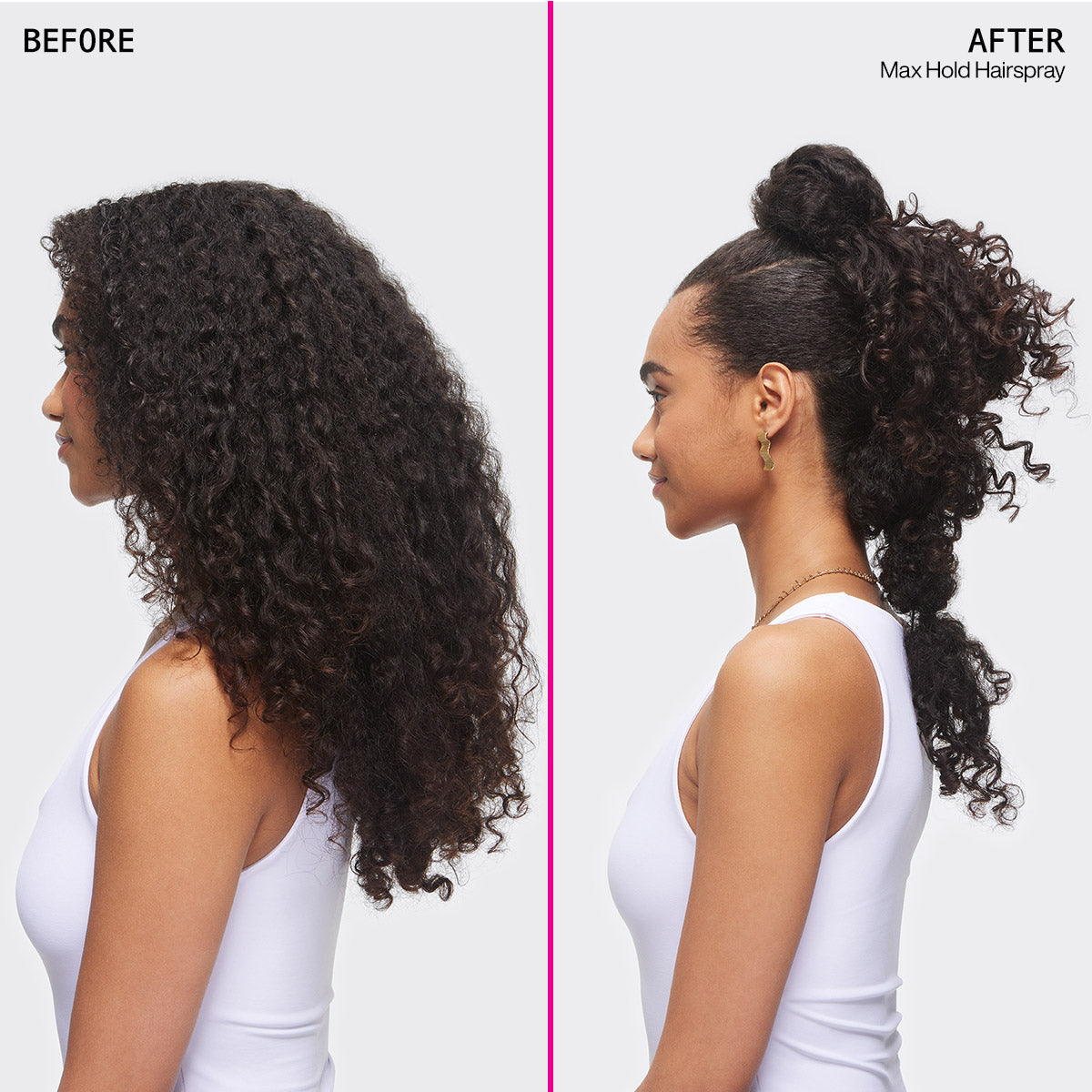 Spray over tørt og stylet hår, spray lag på lag for at få total kontrol!