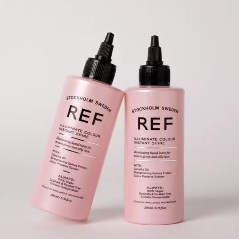 REF Illuminate Colour Shampoo og REF Illuminate Colour Instant Shine indeholder plejende ingredienser som quinoaprotein og økologiske olier, der hjælper med at holde på farven og styrker hårets struktur. Instant Shine er beriget med ingredienser, der giver smuk glans uden at tynge håret.