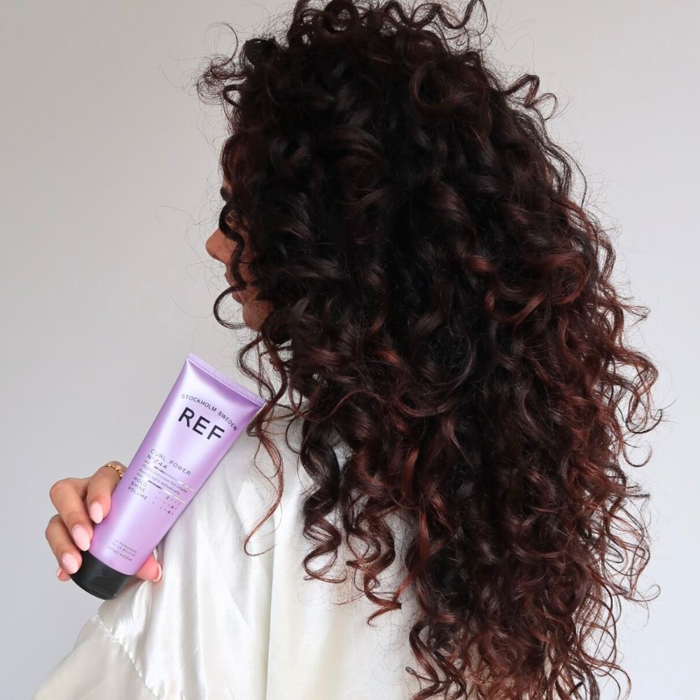• REF Curl Power: Breng de crème aan om krullen te versterken en frizz te temmen. Scrunch weer om nog meer definitie te stimuleren.