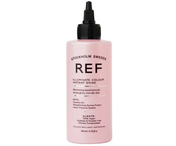 REF Illuminate Colour Shine Set gør dit farvede hår levende, silkeblødt og strålende. Din hårfarve vil forblive intens i længere tid, og dit hår vil føles sundt og velplejet.