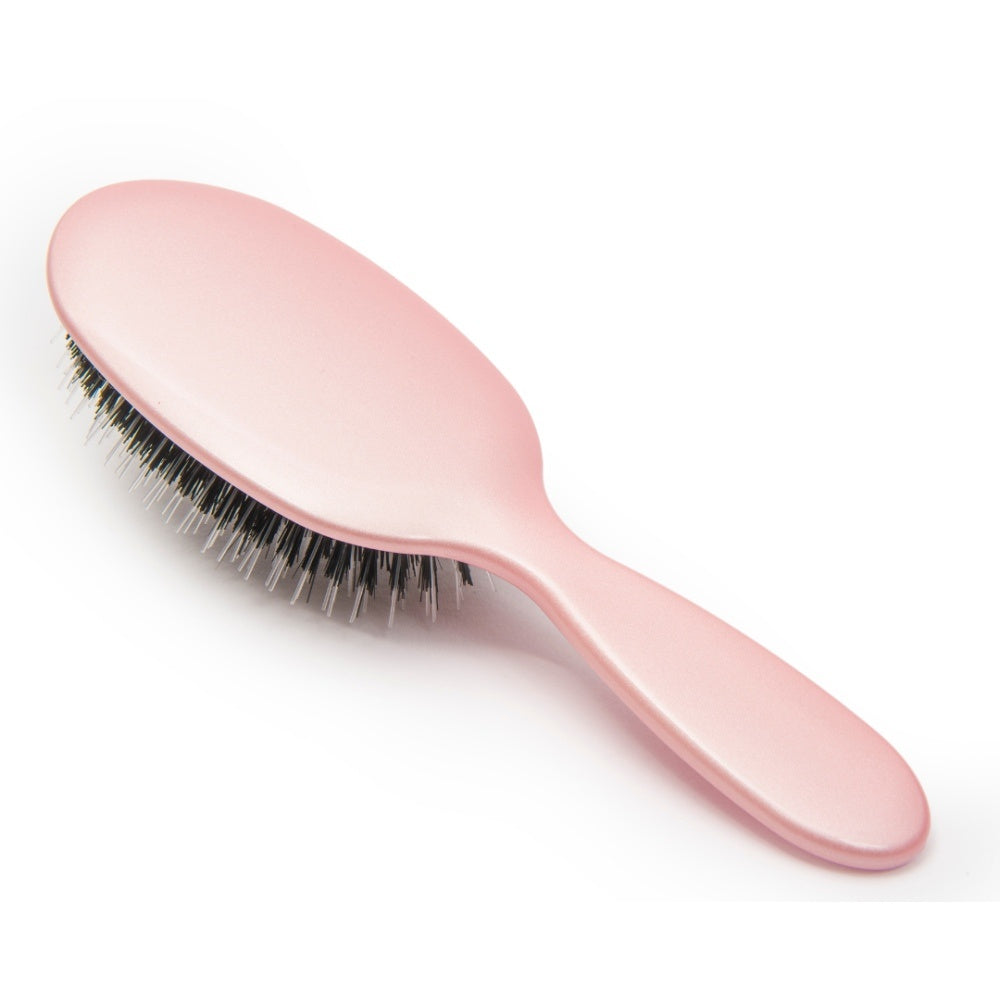 Rock & Ruddle Hair Brush Rose Gold er en stilfuld og effektiv hårbørste, som plejer håret og får det til at se smukt ud. Den funktionelle børste har et elegant pink design og vildsvinehår af høj kvalitet. Vildsvinehårene giver håret en silkeagtig glans. Børsten gør det nemt at rede håret ud, samtidig med at den giver optimal pleje til hovedbunden. Børsten er velegnet til alle hårtyper og fås i to forskellige størrelser.
