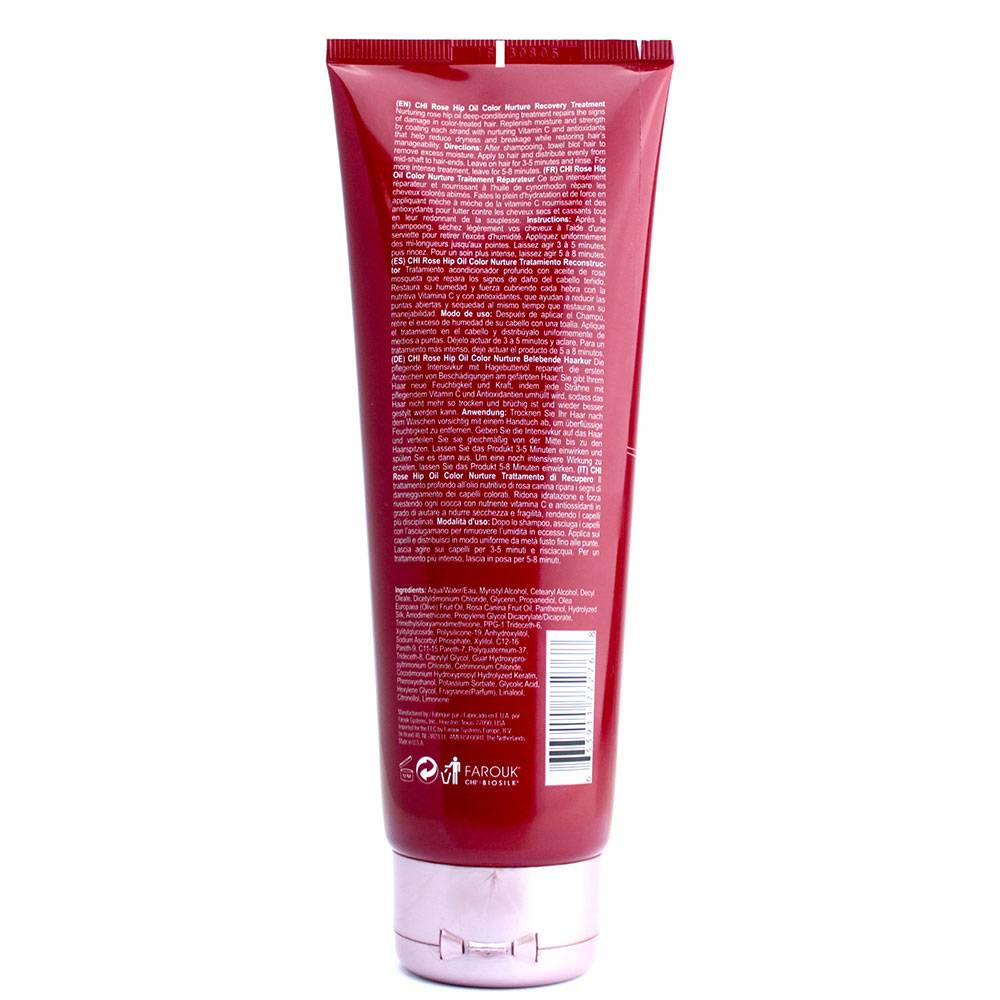 CHI Rose Hip Oil Recovery Treatment er den ultimative hårmaske til at bringe skadet og farvet hår tilbage til livet. Denne intensive hårmaske er specielt formuleret til at reparere og styrke dit hår og samtidig beskytte din hårfarve. Beriget med den nærende kraft fra hybenolie, antioxidanter og C-vitamin giver denne maske dit farvede hår den fugt og næring, det har brug for. Sig goddag til et smidigt, sundt og skinnende hår, der stråler af farve!