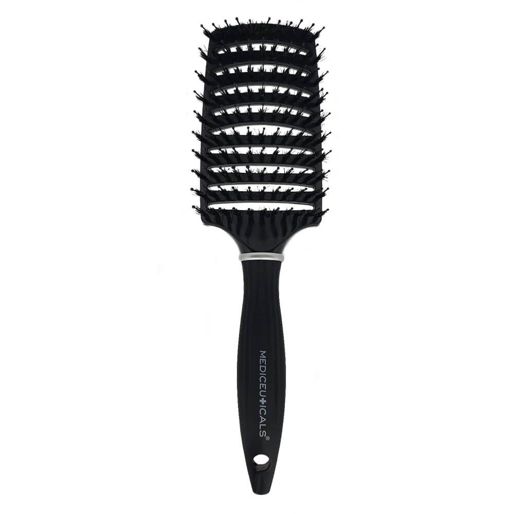 Mediceuticals Scalpro Smoothing & Detangling Brush er ikke bare endnu en hårbørste. Denne børste har en særlig form, som gør dit hår hurtigt og effektivt filtrerfrit. Den hjælper også med at beskytte din hovedbund og dit hårs glans. Hårbørsten er endnu en ukendt topper, som vil forbløffe dig! Man kan sige, at det er en udredningsbørste, stylingbørste og udluftningsbørste i én. Udfiltringen går lynhurtigt (selv i krøllet hår!) og er smertefri. Da materialet kan modstå varmen fra hårtørreren, kan du også bruge den til at style dit hår. Hullerne gør den til en udluftningsbørste og sikrer, at varmen fordeles perfekt, så håret tørres hurtigere.