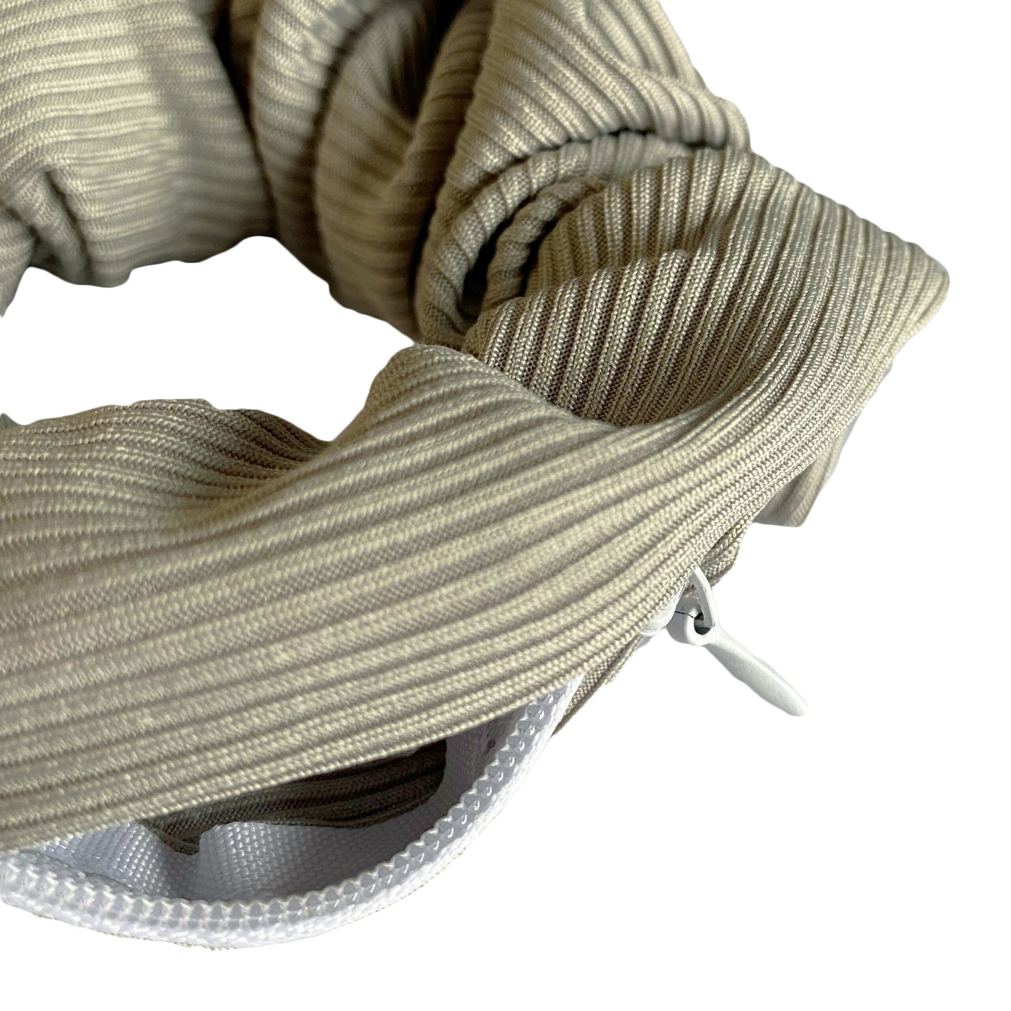 Den grågrønne scrunchie med lynlås har et luksuriøst look på grund af det smukke stof. Stoffet er 'ribbet' for at... Lees meer