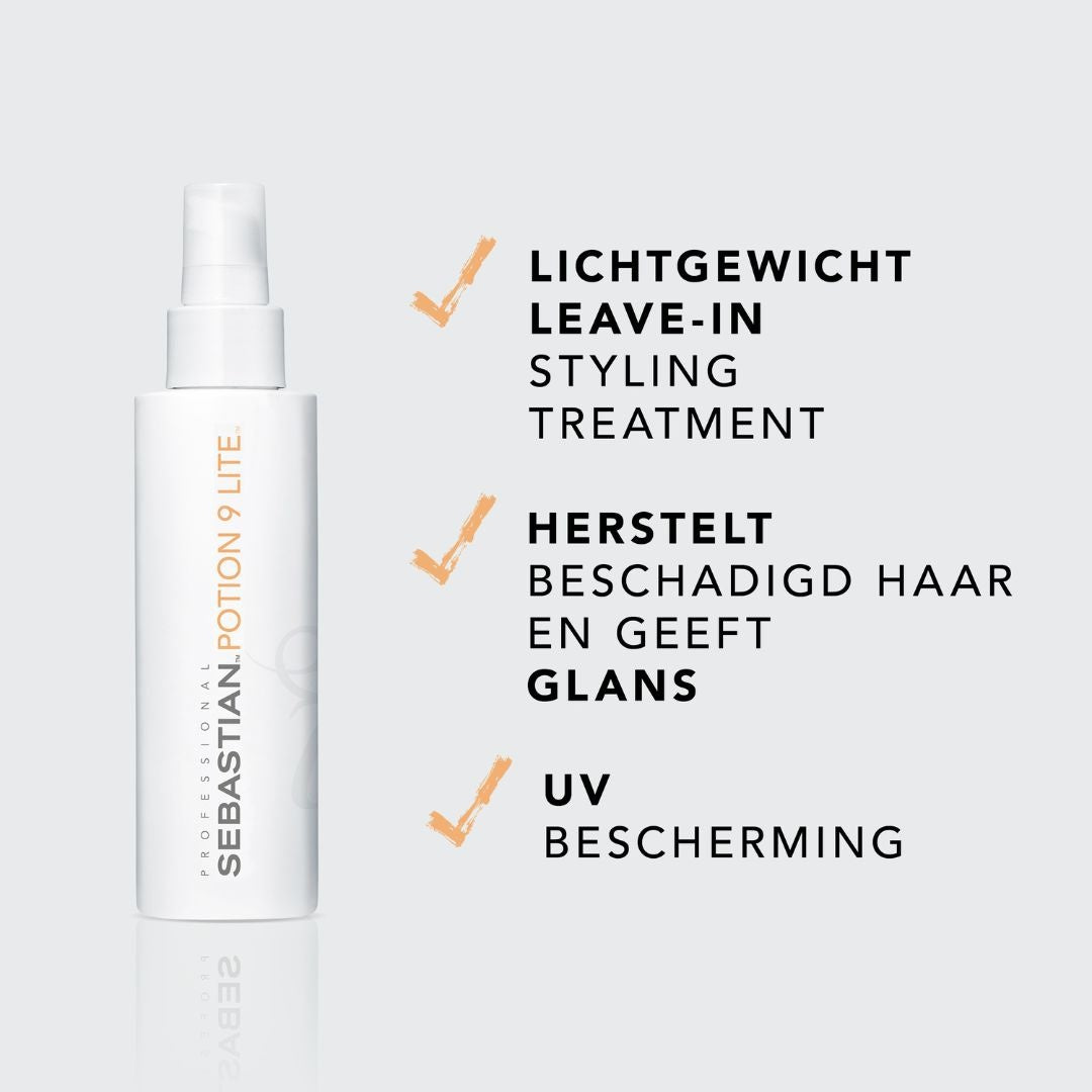 Kombinationen af ingredienser i Sebastian Potion Lite giver let pleje og beskyttelse, samtidig med at håret får en smuk glans og tekstur.