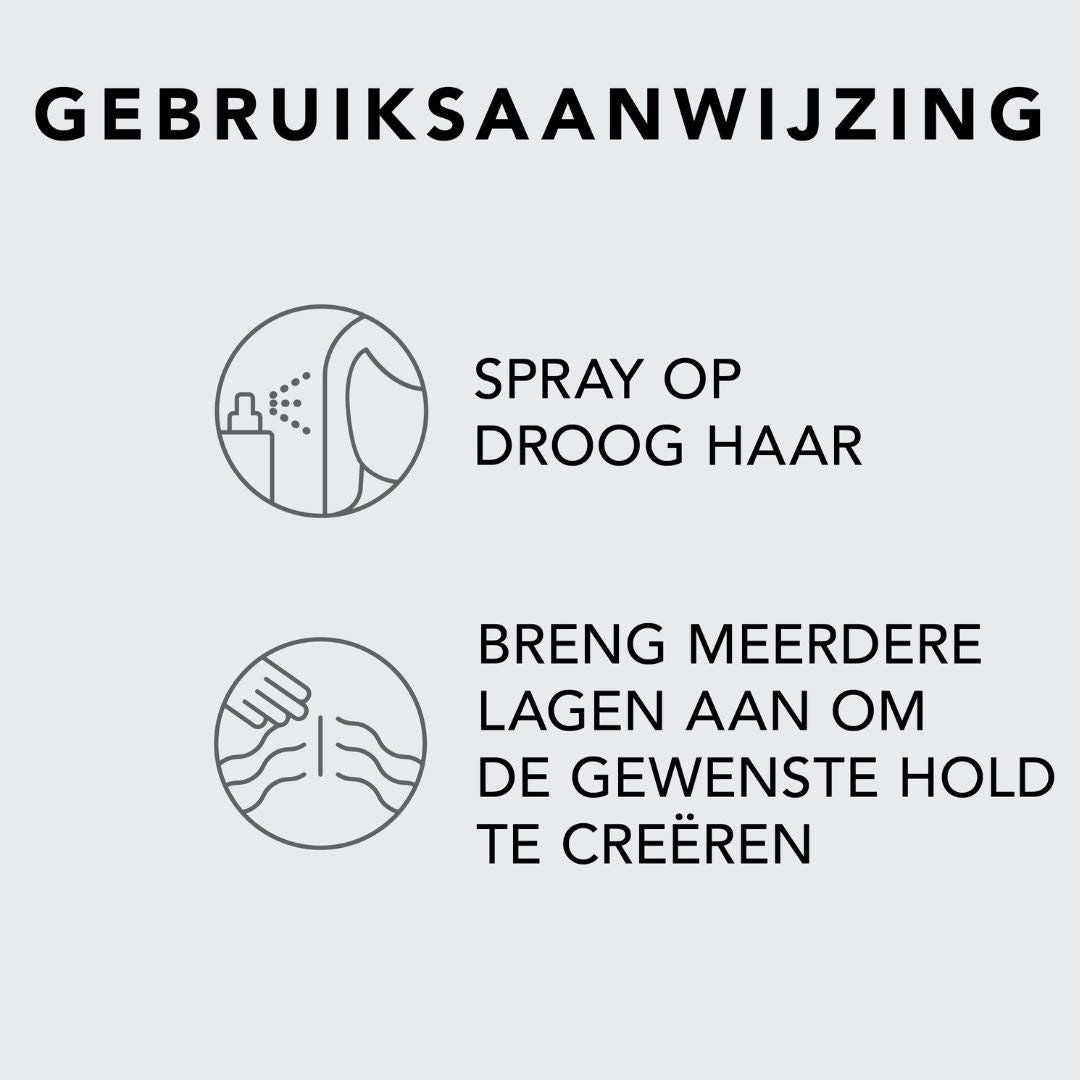 Med denne spray holder dit hår formen hele dagen og er nemt at sætte op igen. Ud over det stærke hold giver den dit look en smuk glans og efterlader ikke et klistret lag!