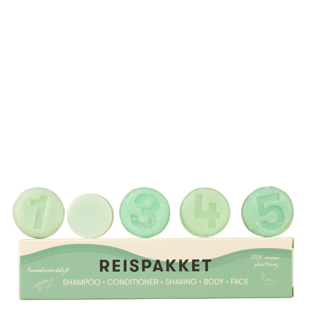 Mød ShampooBars Travel Pack! Denne holdbare og koralvenlige pakke er perfekt til alle dine rejser. Den indeholder alt, hvad du skal bruge til 10 til 15 vaske, og passer nemt i din håndbagage. Ideel til en weekendtur, en ferie eller som gave til en, du holder af. Med denne rejsepakke har du altid dine foretrukne ShampooBars ved hånden uden besværet med væsker og plastikbeholdere.