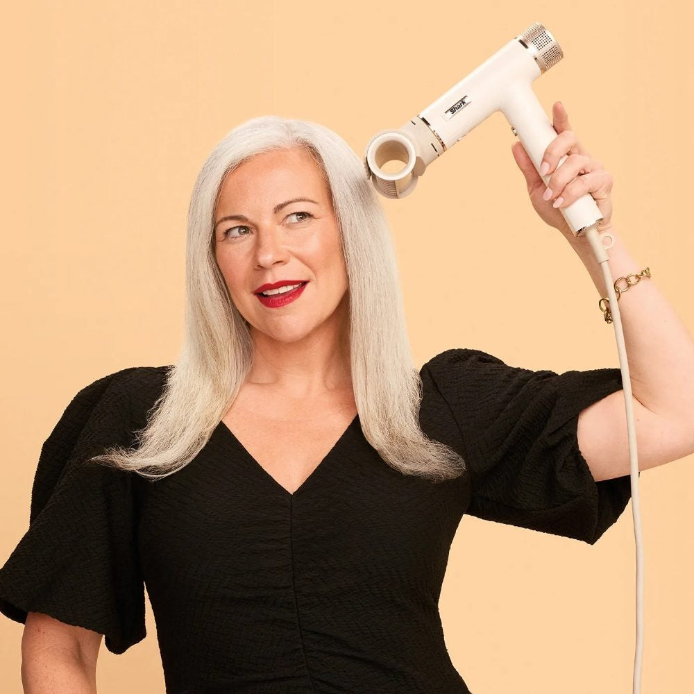 Sharks luksushårtørrer har et smukt og elegant design med hvide og perlemorsfarver. Ud over at se smuk ud er designet også meget effektivt. Det skyldes, at SpeedStyler er kompakt, let og nem at opbevare i den medfølgende pose eller hænge op. Desuden beskytter Shark SpeedStyler dit hår mod varme, og hårtørreren arbejder megahurtigt!