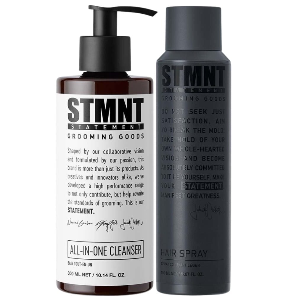 STMNT Care, Style Go! Gebruik de All In One Cleanser voor een totale reiniging en verzorging van top tot teen. Eén product voor een compleet fris gevoel. Dankzij de STMNT Hair Spray is jouw haarstijl altijd veilig en behoud jij de volledige controle. Stay in control and make a STATEMENT.