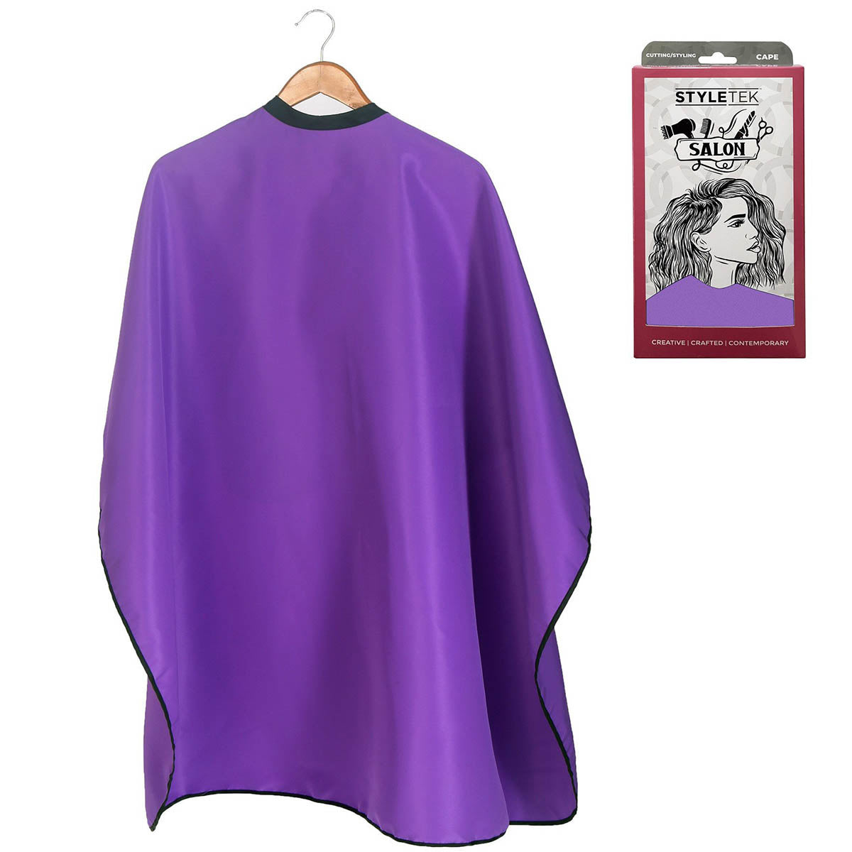 Styletek Paint/Cut Coat Purple i meget høj salonkvalitet med praktisk knaplukning. Velegnet til klipning, farvning og permanent. Frisørfrakken kan desuden vaskes ved op til 30 grader. Efter vask anbefales det at hænge kappen til tørre på en knage. Det forebygger rynker. Kappen er lavet af 100 % polyester og er antistatisk og åndbar, hvilket er behageligt for kunden.