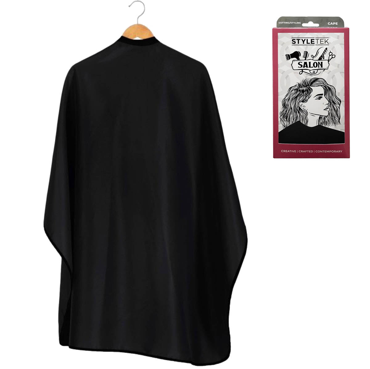 Styletek Dye/Cut Coat Black i meget høj salonkvalitet med praktisk knaplukning. Velegnet til klipning, farvning og permanent. Frisørfrakken kan desuden vaskes ved op til 30 grader. Efter vask anbefales det at hænge den til tørre på en knage. Det forebygger rynker. Kappen er lavet af 100 % polyester og er antistatisk og åndbar, hvilket er behageligt for kunden.
