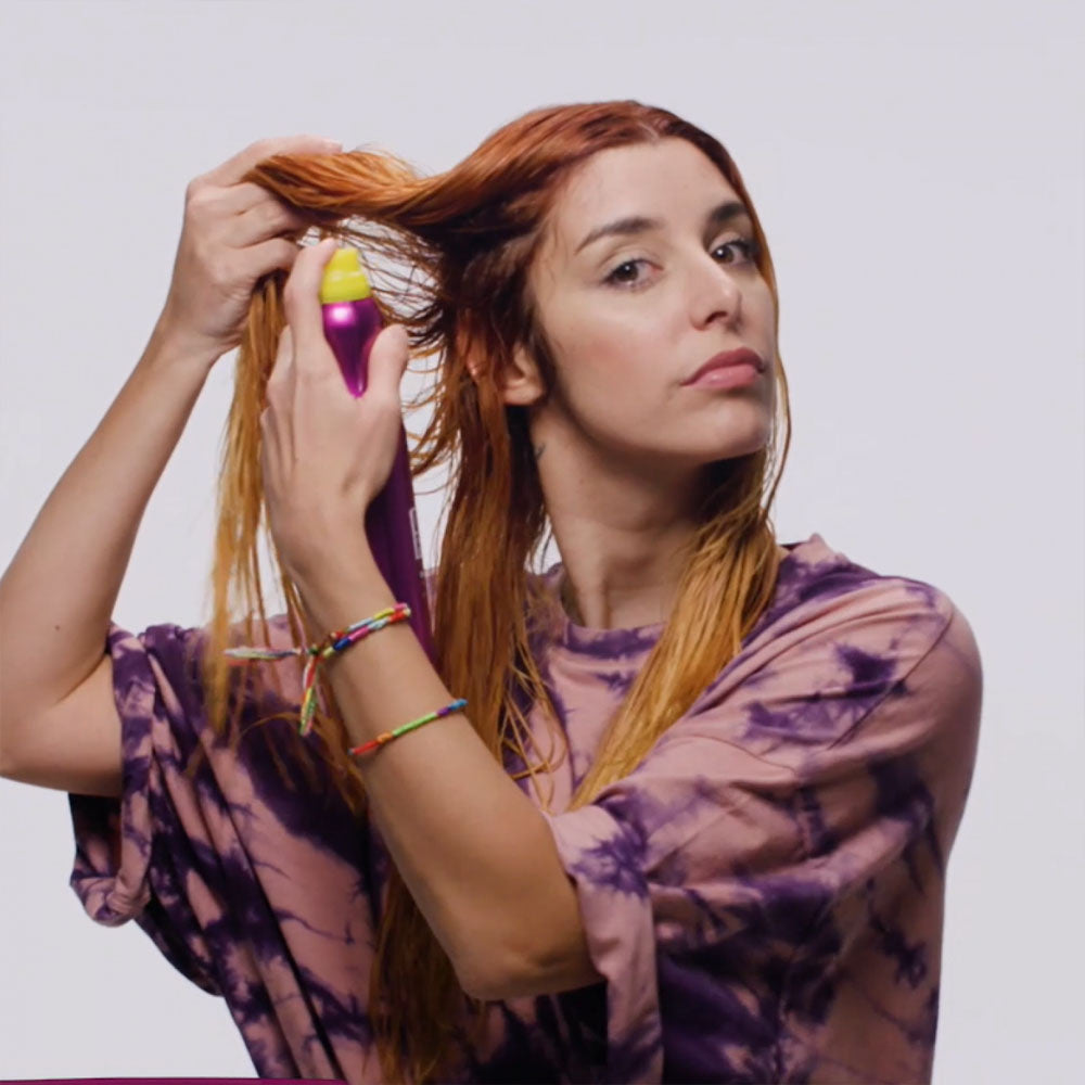 Spray Superstar Queen For a Day på hårrødderne. Fordel sprayen i hele håret for at opnå det bedste resultat. Lad derefter sprayen trænge godt ind.
