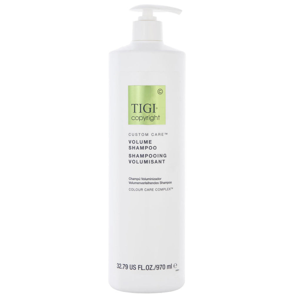 TIGI Copyright Custom Care Volume Shampoo er en shampoo, der passer til alle hårtyper, og som renser, plejer og genopbygger hovedbunden i dybden. Shampooen har en let formel, der renser hovedbunden grundigt uden at tynge håret, og efterlader håret dejligt blødt og smidigt. Takket være den lette formel bevares volumen i dit hår optimalt. Denne shampoo fra TIGI trænger dybt ind i håret, fugter hårfibrene og forbedrer hårets fleksibilitet, form og tekstur! Alt sammen på grund af Colour Care Complex, en blanding af økologisk kokosolie, lipider, 18 MEA og keratin.
