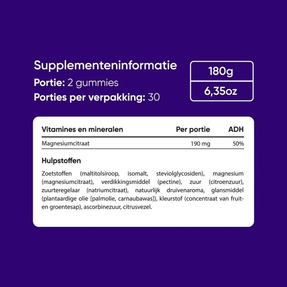 • 190 mg magnesiumcitraat per portie