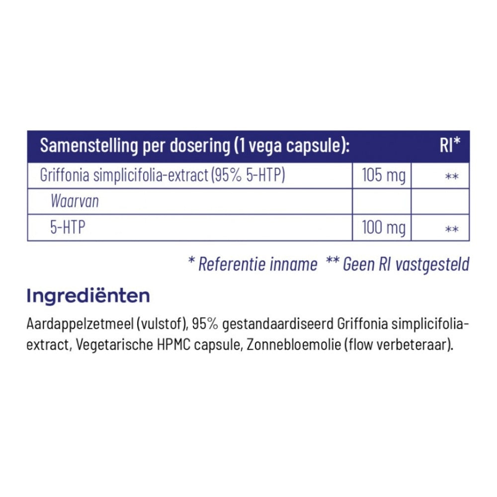 aardappelzetmeel (vulstof), 95% gestandaardiseerd Griffonia simplicifolia-extract, HPMC (capsule), zonnebloemolie (oleum helianthus)