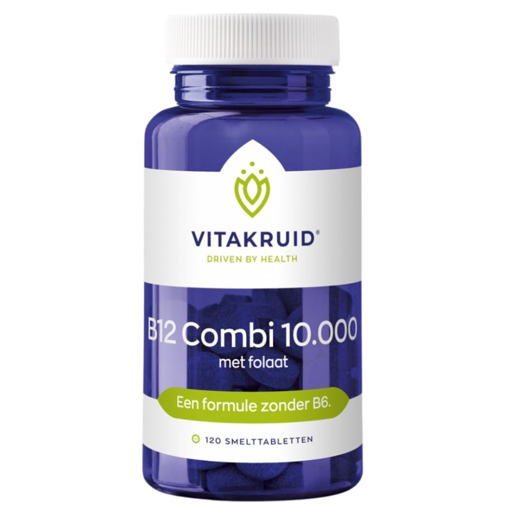 Het Vitakruid B12 Combi 10.000® met Folaat bevat de beste vormen van vitamine B12 in hoge doseringen. Hierdoor kan vermoeidheid en futloosheid worden verminderd. Bovendien heeft vitamine B12 een positieve invloed op het immuunsysteem. Dit veelzijdige innovatieve product draagt daarnaast ook bij aan een verbeterde functie van het zenuwstelsel, de aanmaak van rode bloedcellen én speelt een rol in het celvernieuwingsproces. De formule bevat geen vitamine B6 en is geformuleerd met het Quatrefolic® folaat wat voor een verbeterde opname van de B12 zorgt.