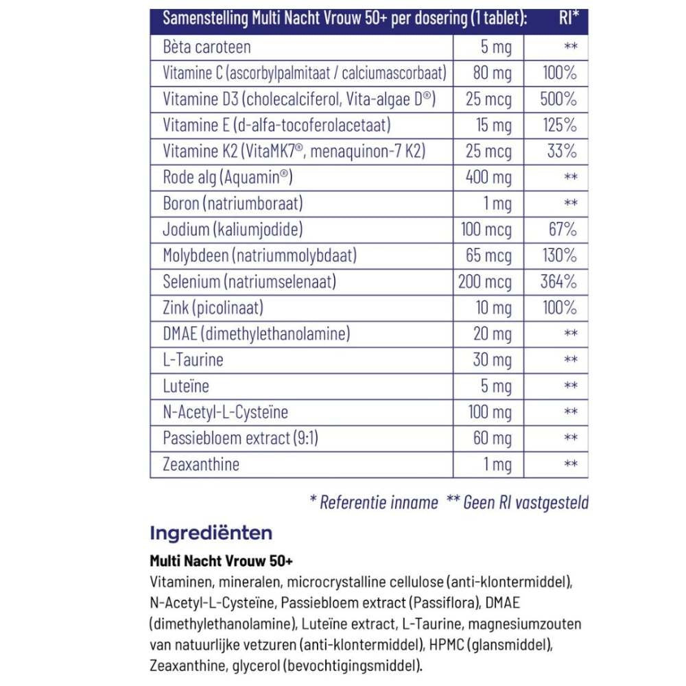 Uit welke ingrediënten bestaat de Vitakruid Multi Nacht Vrouw 50+?