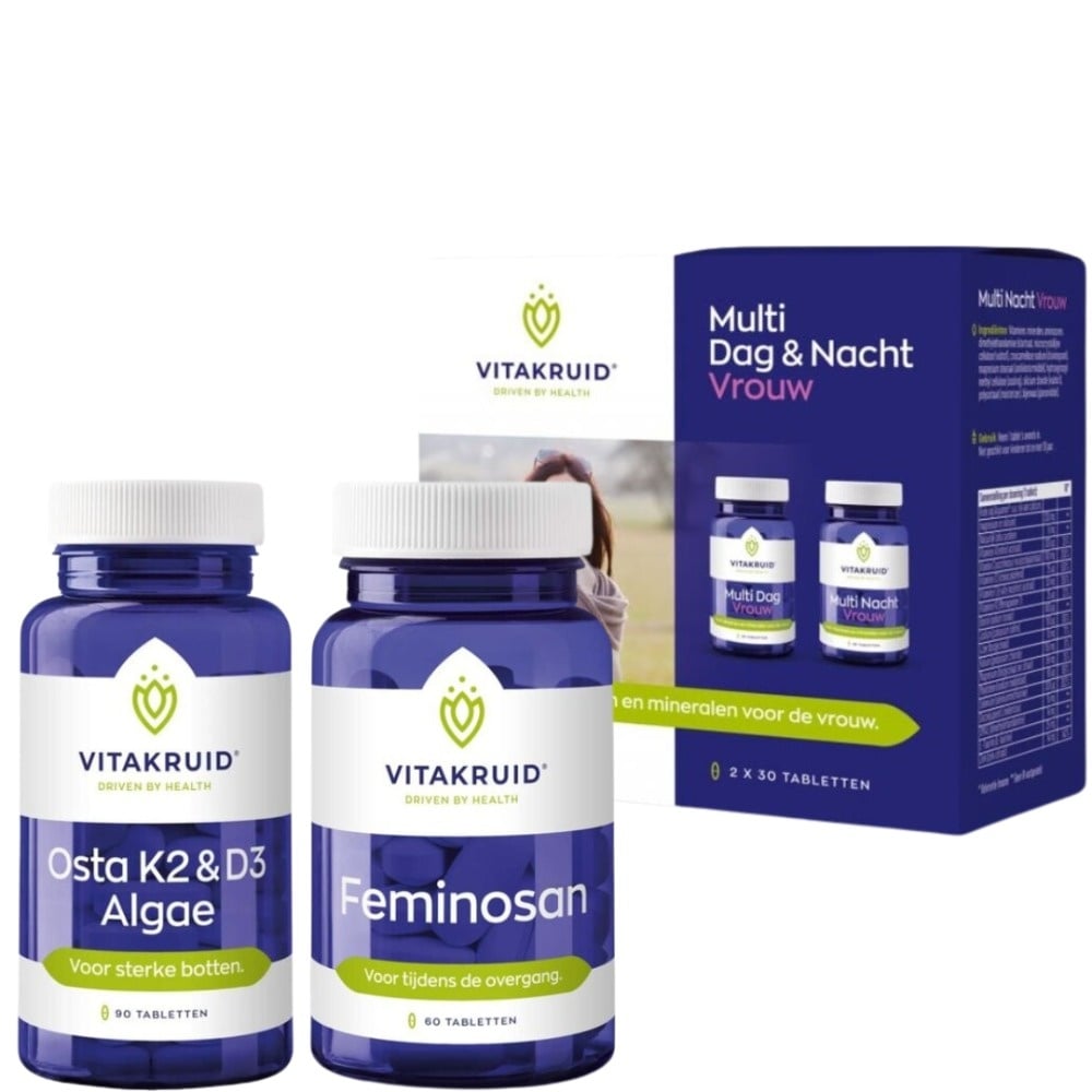 Last van opvliegers, een wisselende stemming en verandert je cyclus? Grote kans dat je lichaam in de overgangsfase is beland. Met de Vitakruid Overgang Bundel kom jij de periode voor, tijdens en na de overgang door. De overgangsbundel is precies afgestemd op de behoefte van de vrouw. Dankzij Osta K2 & K3 Algae worden de botten ondersteunt. De multi bevat nutriënten voor de opbouw en herstel van spier-, bind-, bot- en hersenweefsel. Niet te ontbreken is natuurlijk Vitakruid Feminosan. Dit voedingssupplement biedt jou de complete formule voor de overgang en maakt deze overgang bundel dan ook helemaal compleet.