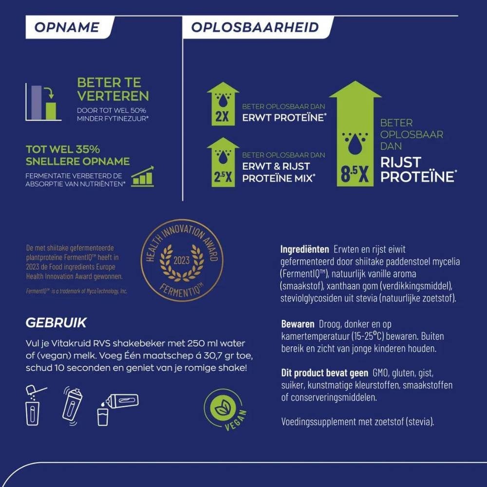 <h3>Alles wat je wilt weten over <br/>Vitakruid Vegan Protein Fermented by Shiitake - 921gr</h3>