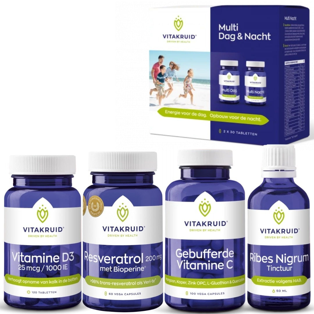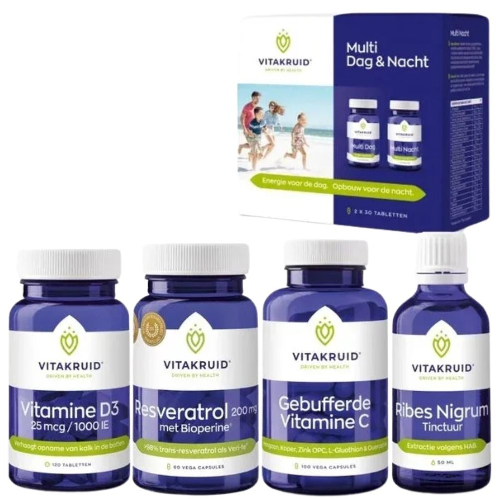 Met de Vitakruid Weerstand Bundel Advanced ga jij gezond het jaar door ongeacht de temperatuur en de opkomende virusjes! Nederland is een fijn land, maar de weersomstandigheden zijn niet altijd zonnig. Het grootste gedeelte van het jaar is het kouder en natter, om deze maanden goed en gezond door te komen is onze weerstand enorm belangrijk. Dankzij de Weerstand Advanced Bundel heb jij alle voedingssupplementen in huis die jouw weerstand een enorme boost geven! De algehele gezondheid wordt bevorderd met de multi, het gebufferd vitamine C bevat een complete formule voor de immuniteit en de hoog gedoseerde vitamine D3 en K2 geven je weerstand een boost. Kortom, een complete formule zodat jij je fit en vitaal voelt het hele jaar door!