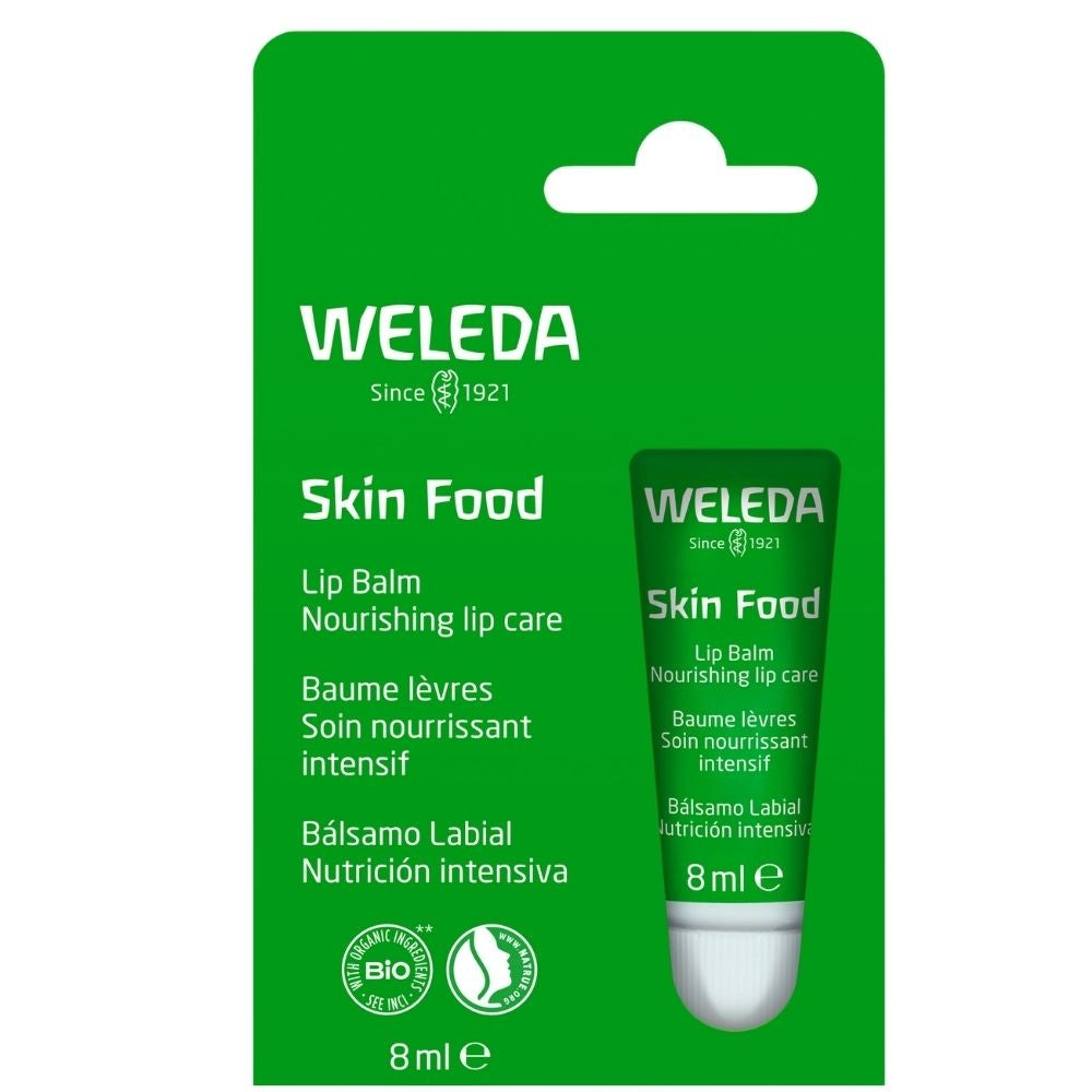 Weleda Skin Food læbepomade er den ultimative løsning til tørre, følsomme og sprukne læber. Takket være den ikoniske Skin Food-formel med rene naturlige olier, beskyttende voks og genoprettende planteekstrakter, bliver dine læber øjeblikkeligt næret og beroliget. Denne smøragtige læbepomade forhindrer tørhed og holder dine læber bløde og smidige i lang tid. Og selvfølgelig: 100% naturlig, cruelty-free og glutenfri.
