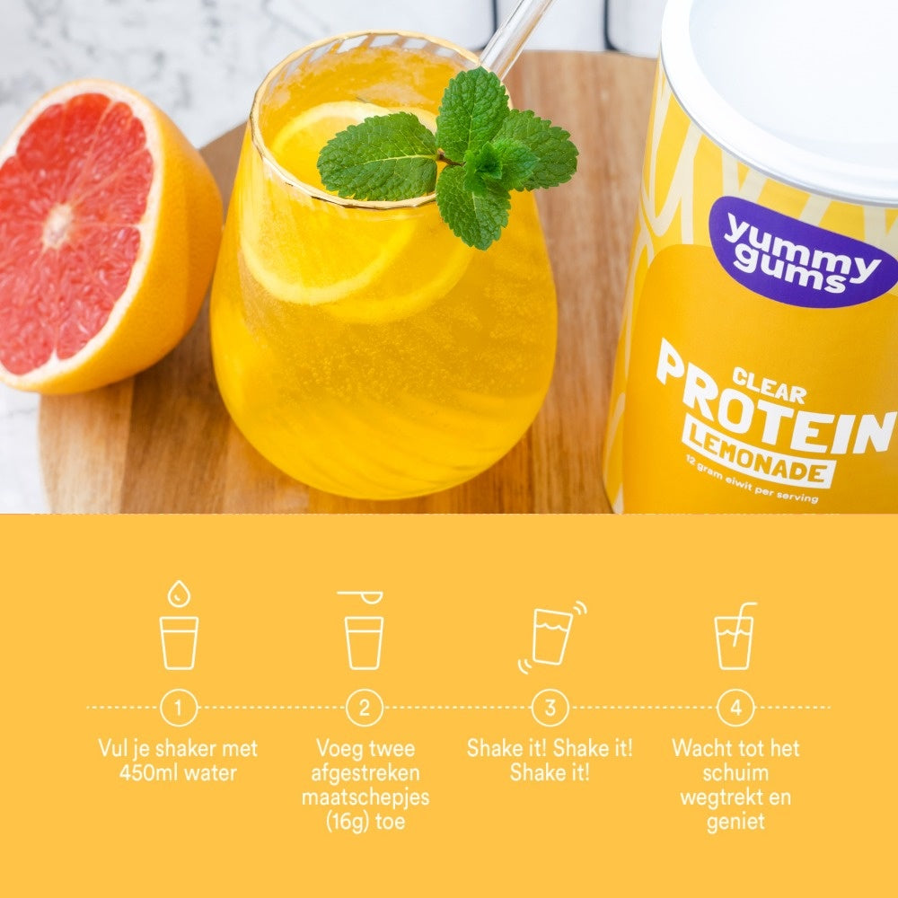 <h3>Alles wat je wilt weten over <br/>Yummygums Clear Protein Lemonade - 224gr</h3>