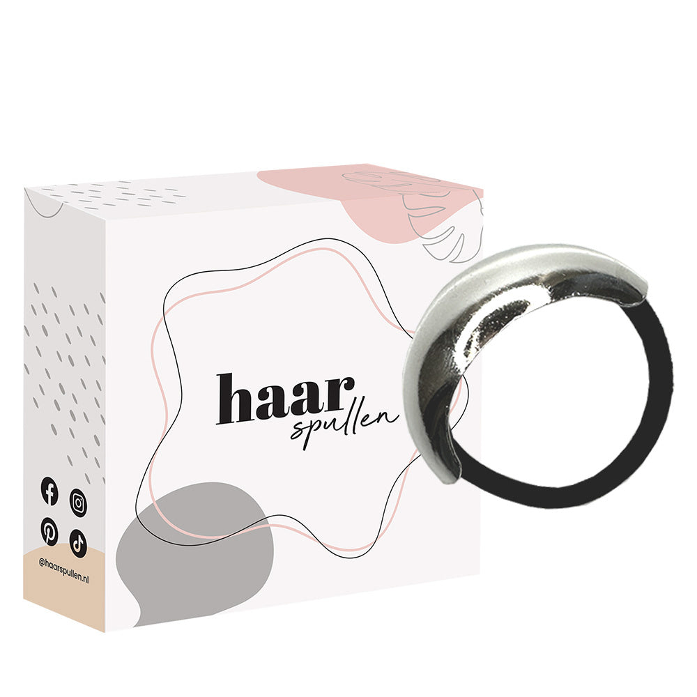 Denne sølvfarvede hårelastik udstråler elegance takket være den stilfulde sølvdetalje. Det er et smukt statement-smykke, som vil fuldende dit outfit til enhver lejlighed. Den sølvfarvede hårelastik er elastisk i høj kvalitet og har et fast greb.